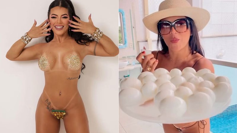 Em busca do título de “musa do tapa-sexo” neste carnaval, ela posou para um ensaio fotográfico exclusivo usando um banhado a ouro: “É uma honra poder homenagear uma peça tão icônica da nossa cultura carnavalesca. O tapa-sexo representa ousadia, sensualidade e celebração do corpo feminino”, completou.