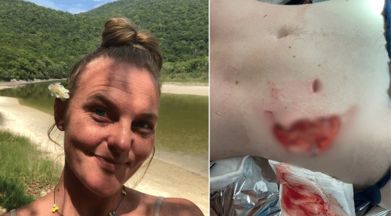 A vítima é a psicóloga e escritora Fabiana Lenz, que estava no segundo dia de um acampamento que realiza anualmente no local desde 2020. Segundo ela, o ataque aconteceu quando entrou na água para um último mergulho antes de deixar a praia.