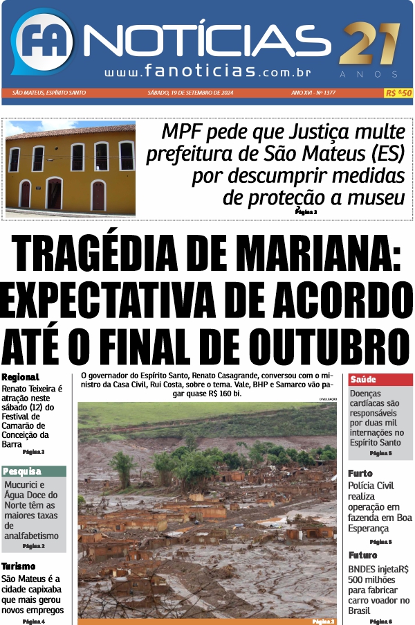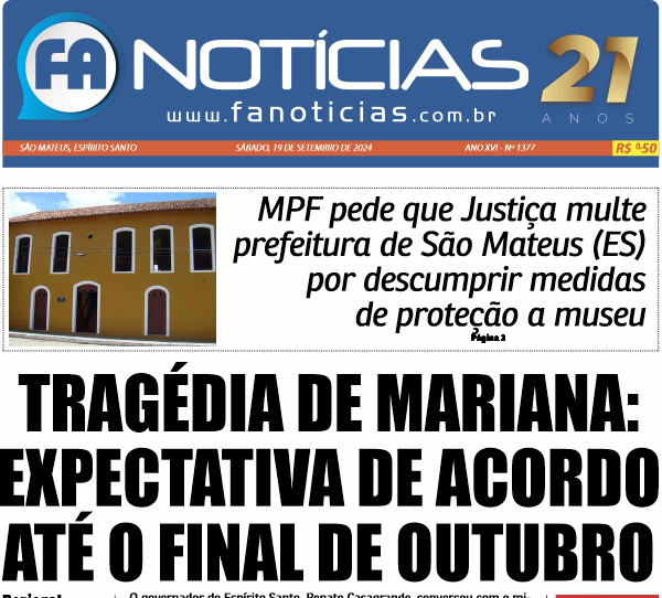 As principais notícias de São Mateus, Norte do Espírito Santo e do Brasil, você encontra na sua edição impressa do FA Notícias.