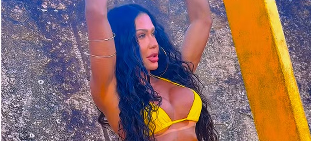 Gracyanne Barbosa exibe o bronzeado em ensaio fotográfico de biquíni amarelo