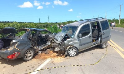 Duas pessoas morreram em um acidente envolvendo dois carros — um Fiat Doblò, de cor cinza, e um Chevrolet Prisma,...