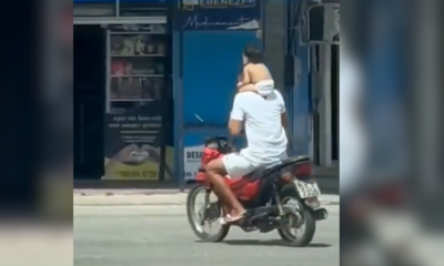 Homem transporta criança na nuca em moto e é preso após vídeo viralizar; vídeo